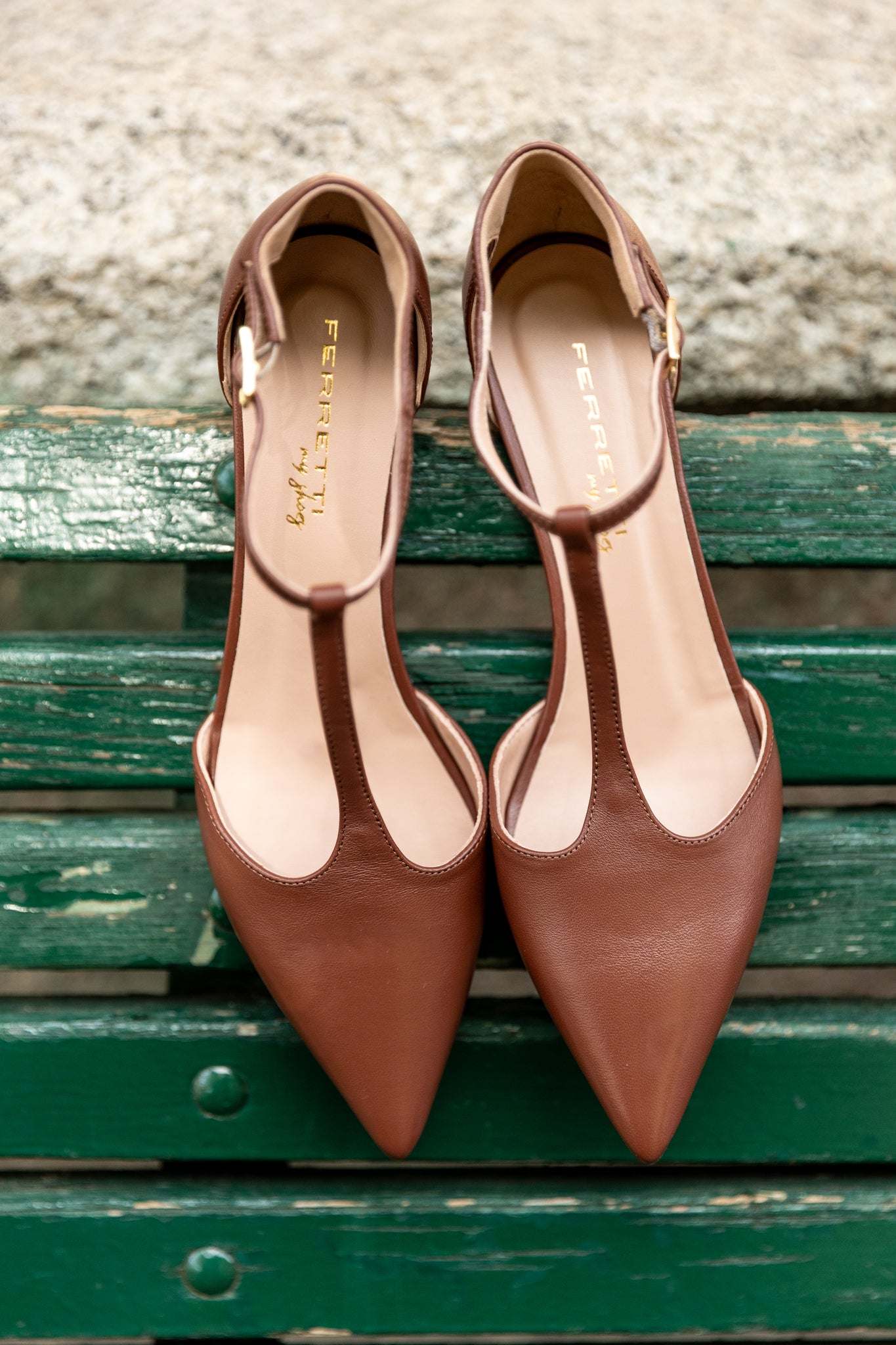 T-bar shoe in morbida pelle color cognac con cinturino regolabile e tacco a coda ricoperto in pelle di 4,5 cm. La suola è in vero cuoio Italiano. Totalmente foderata in pelle e lavorata in Italia da abili artigiani.