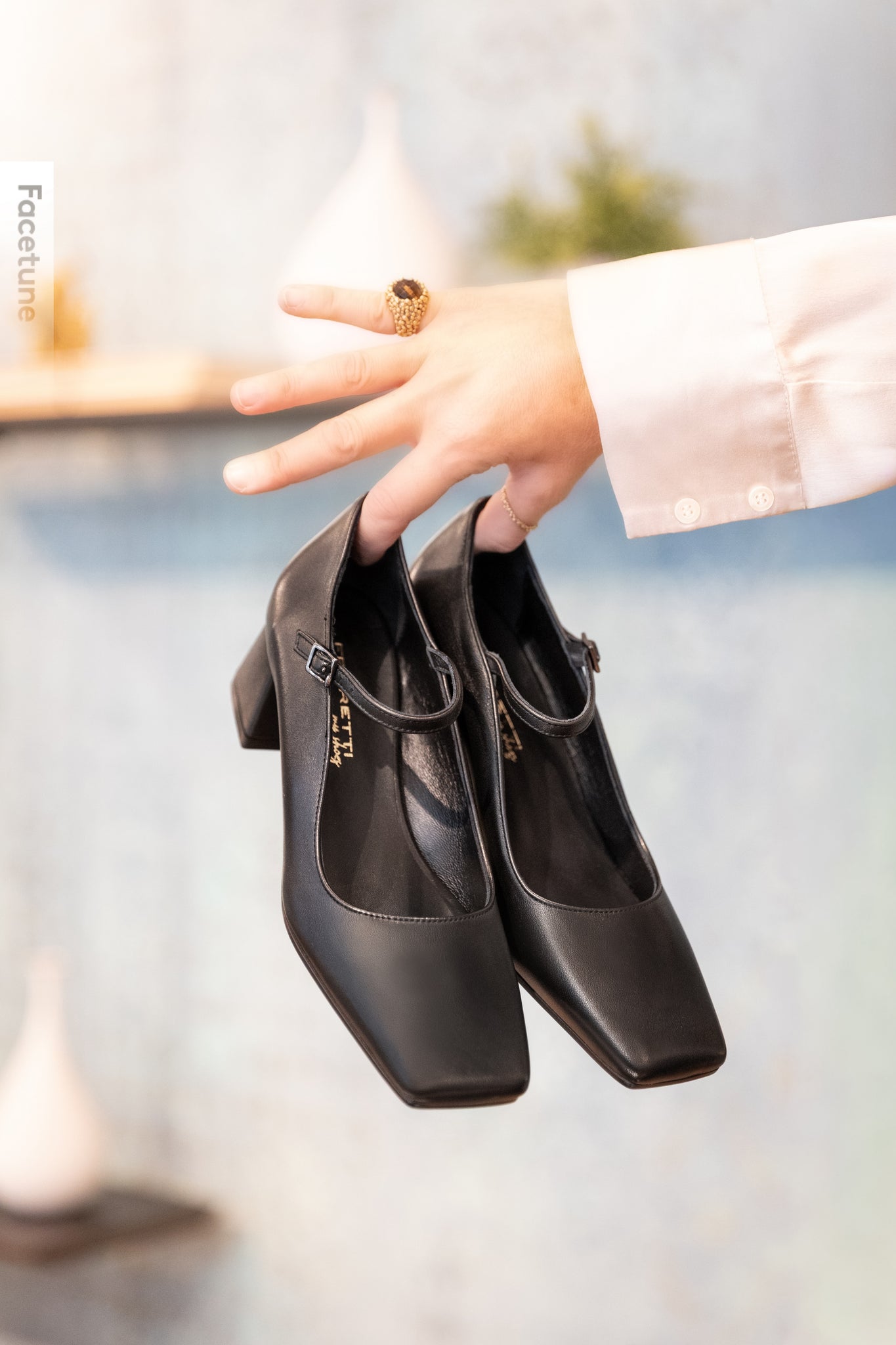 Mary jane in pelle nera dalla forma squadrata con un comodo tacco largo di 4,5 cm. È completamente foderata in pelle con suola in gomma. E lavorata artigianalmente in Italia ed è perfetta per completare un outfit da ufficio ma anche per dare un tocco bon ton ai vostri outfit serali o da tempo libero.
