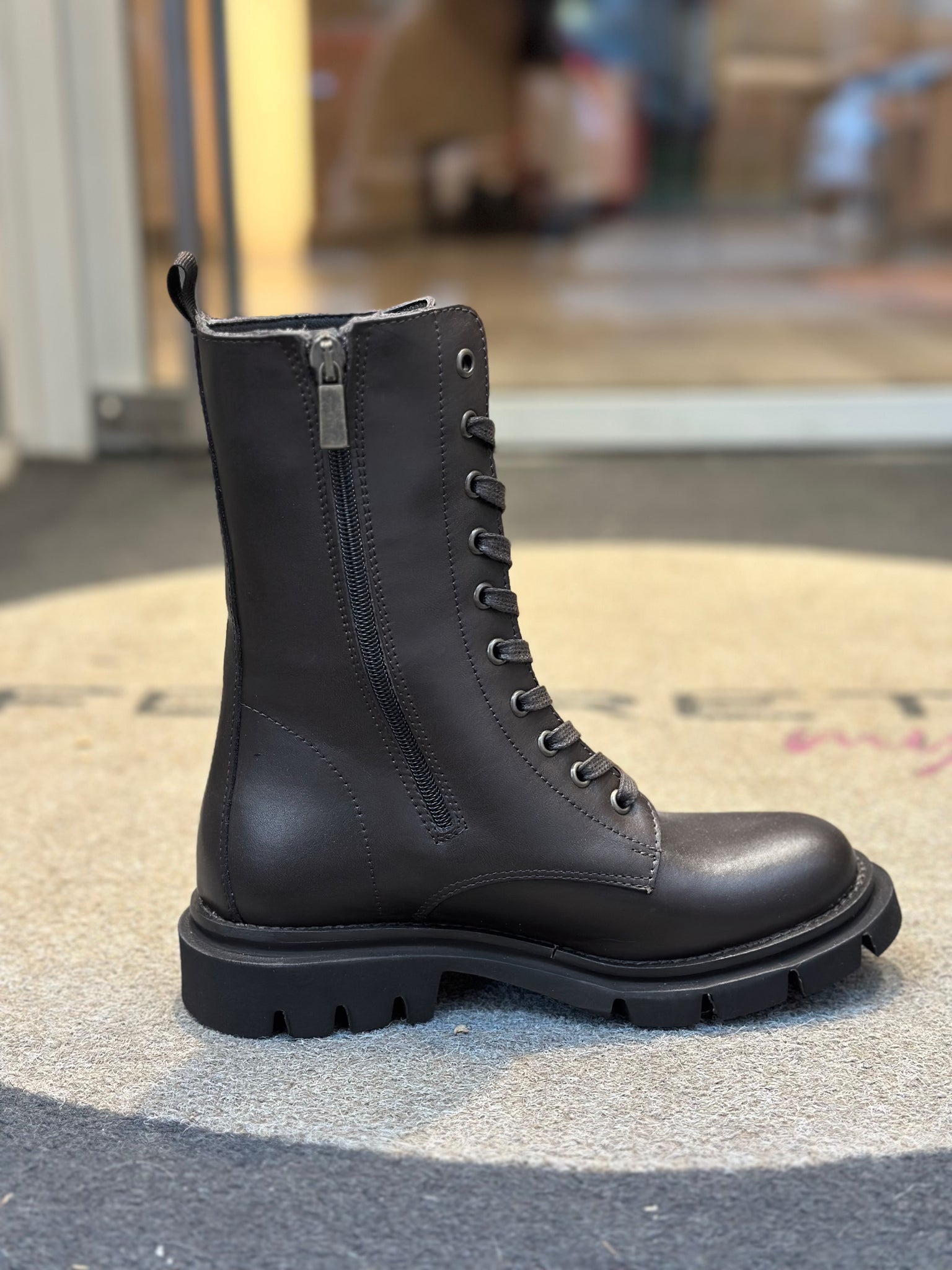 Anfibio in pelle marrone con 10 passanti e zip interna per una veloce e comoda calzata. Ha un fondo extra light in gomma ed è completamente foderato in pelle. La suola è alta circa 2 cm e il tacco 4 cm. L'altezza del gambale è di 21 cm ed è lavorato artigianalmente in Italia. Per chi non vuole rinunciare alla grinta e alla comodità.