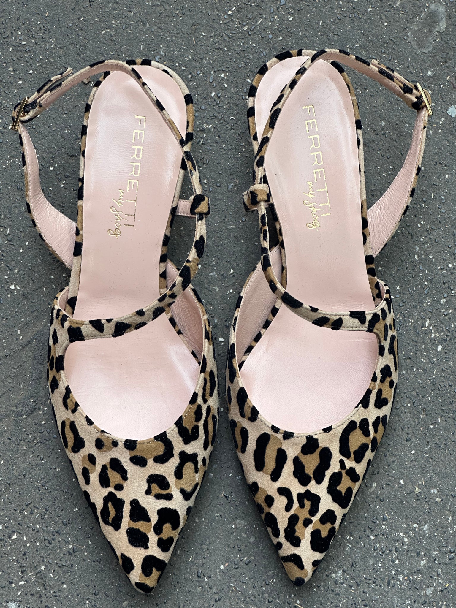 Slingbacks in beige suede with a flocked animal print, featuring a pattern across the instep and an adjustable strap. Fully lined in leather with a kitten heel of approximately 4 cm. Sole made of natural material.